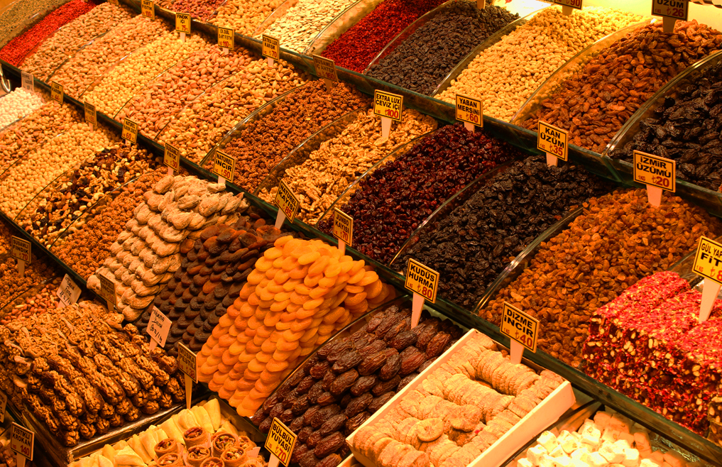 We made our only purchase of the day in the Egyptian Bazaar too. We are not particularly acquisitive at this point in our lives. Possibly a result of our moving-out misadventures, we’ve developed an aversion to the “stuff” that somehow manages to attach itself to lives without the conscious knowledge of the living. So naturally we preferred comestibles, and we decided to make our shopping experience a pleasant one. It can be done in the big bazaars.