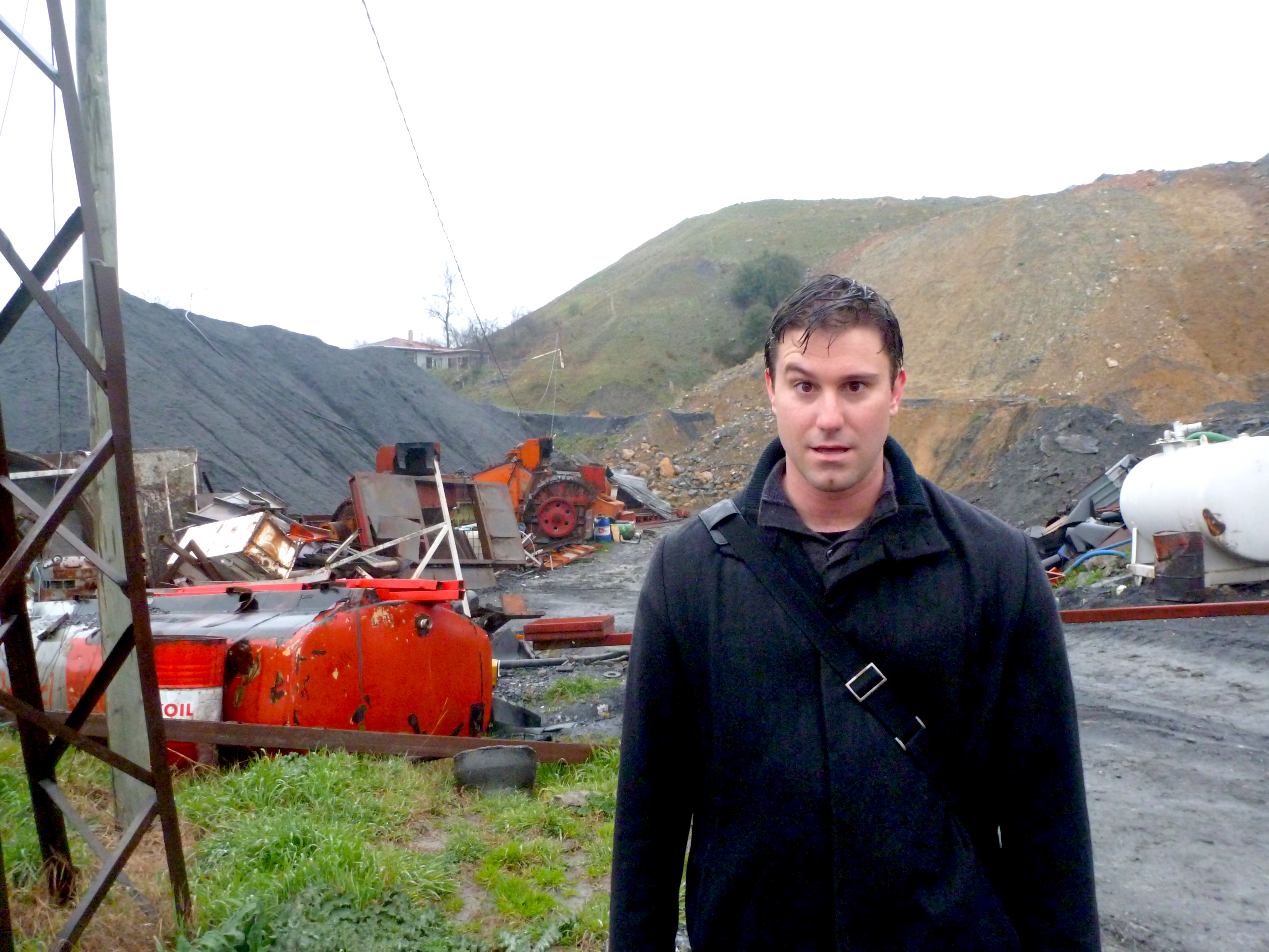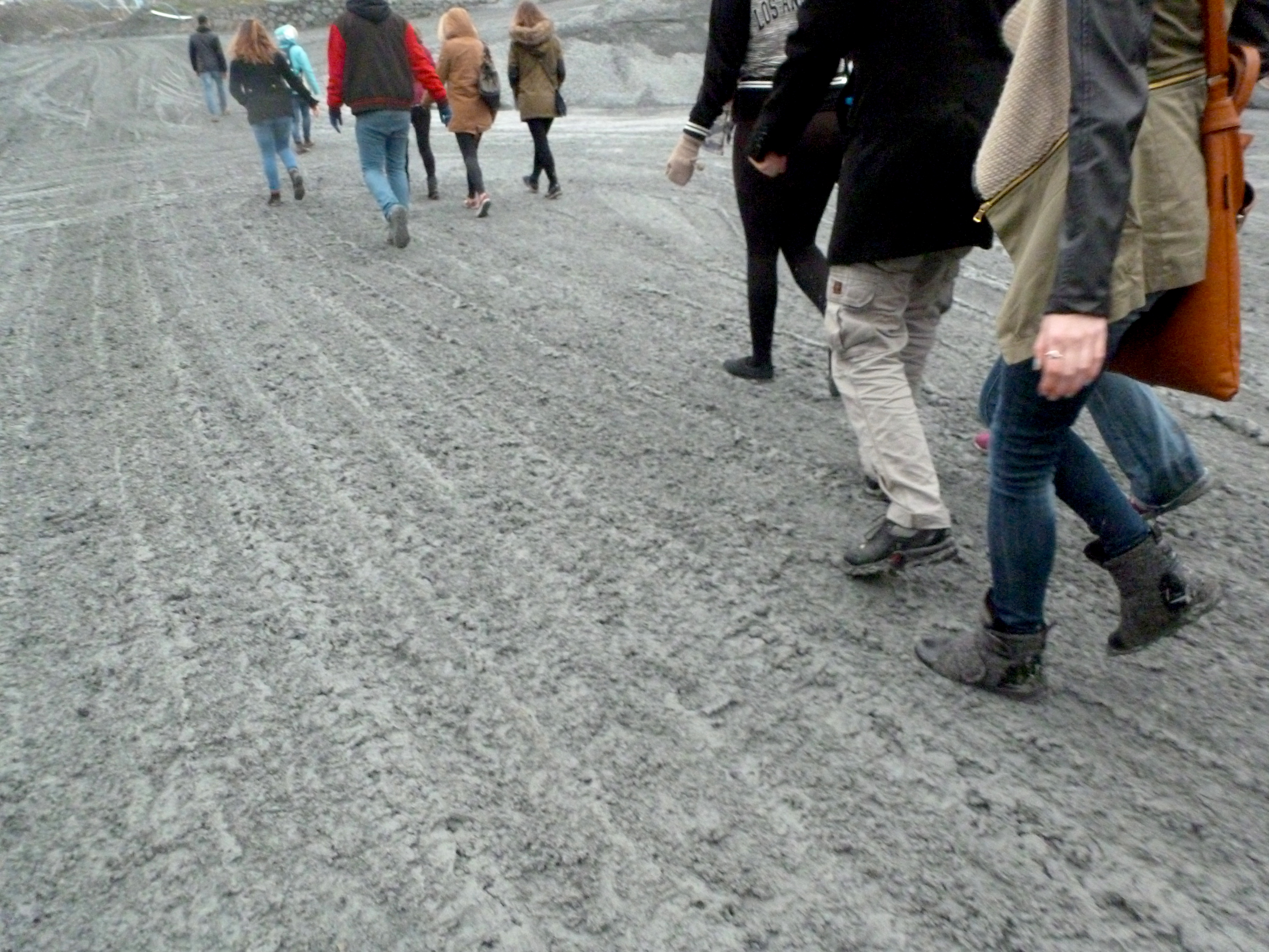 We trudged in drizzly weather along a muddy road along several limestone quarries, past dilapidated houses with chickens scurrying around the yard, and through some kind of a concrete-producing plant. Every time we turned a bend, one of our fellow adventurers would speculate we were just ten minutes away. The road eventually became less of a paved surface, and more of a stream of gunky gray concrete sludge.