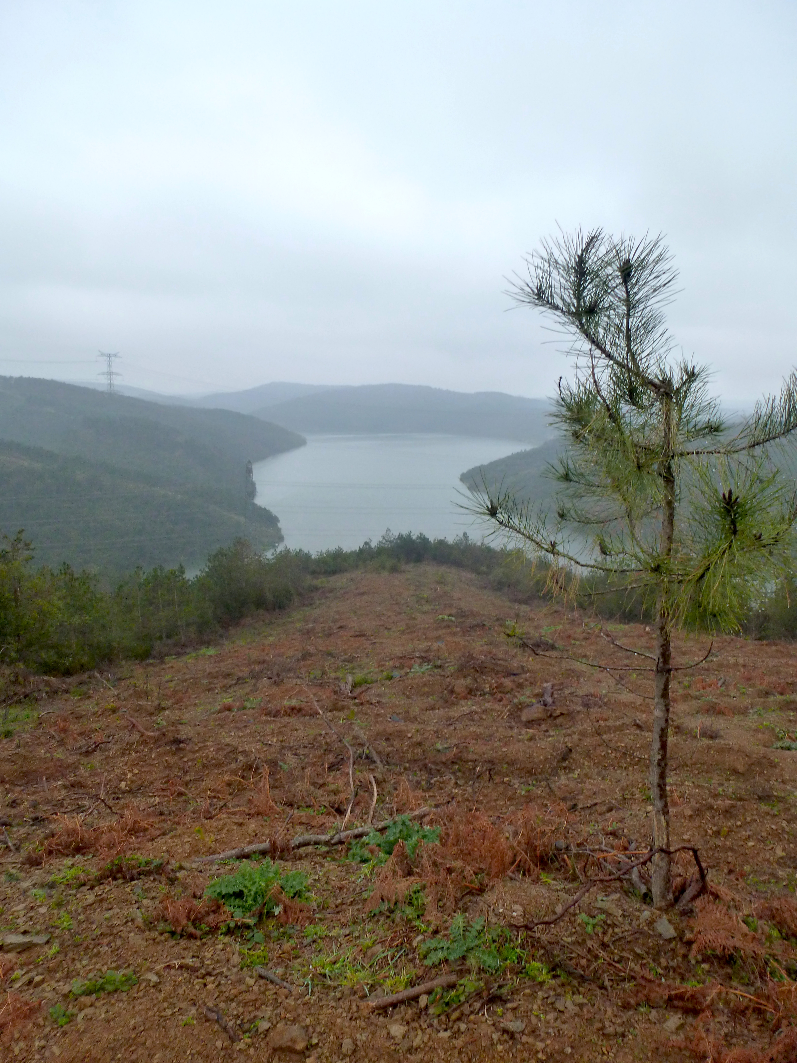 An hour later, we finally reached a large body of water and a vast expanse of tree-covered hills, but there was no aqueduct. It seemed like it was just around the bend, so we decided to trek down an unmarked trail along the lake. It would only be ten more minutes, right?