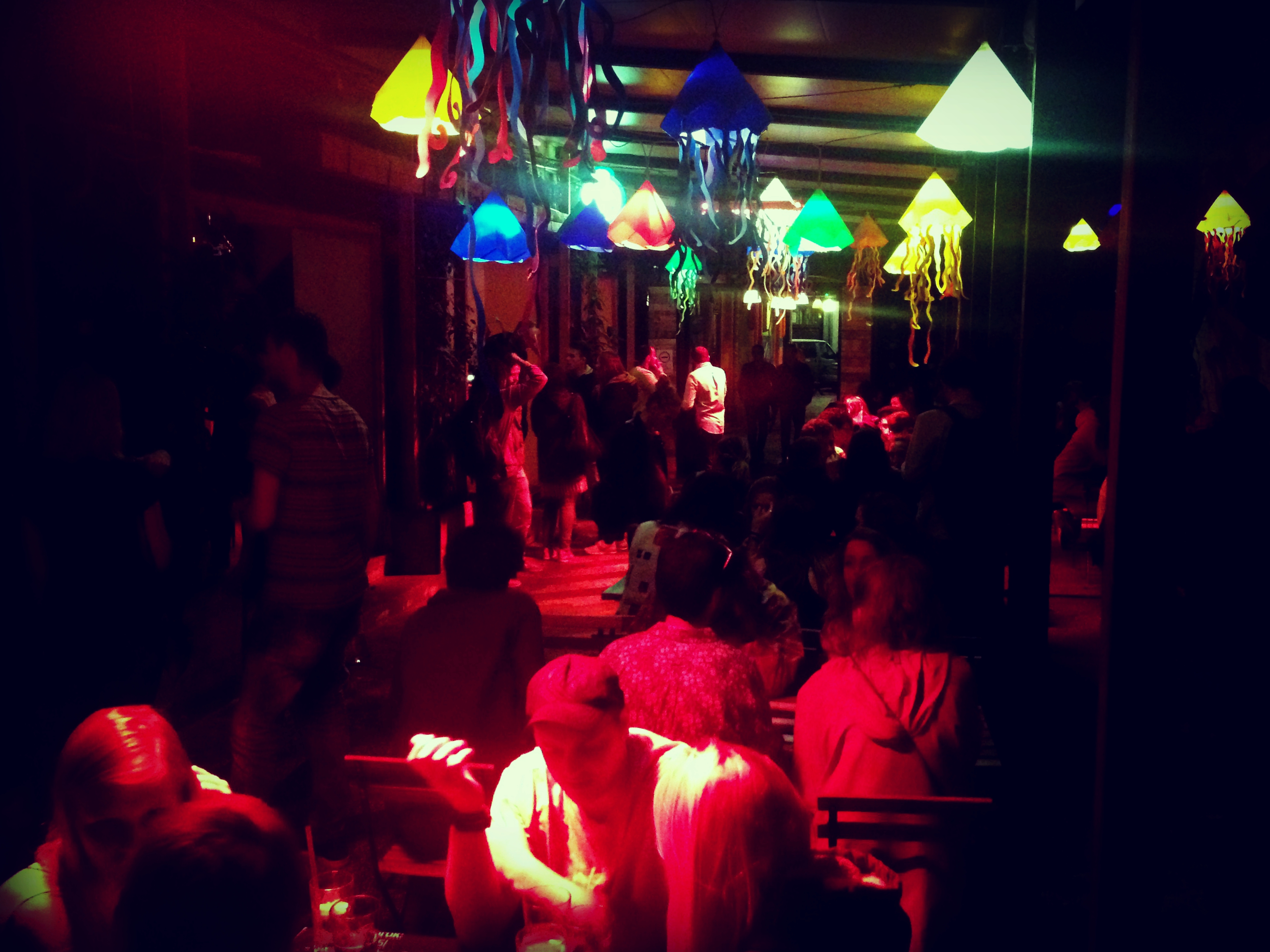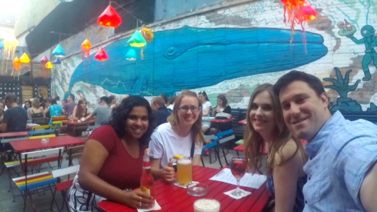 Summer night with Chethana and Emily at Kuplung, a former car repair shop (“kuplung” means clutch in German).